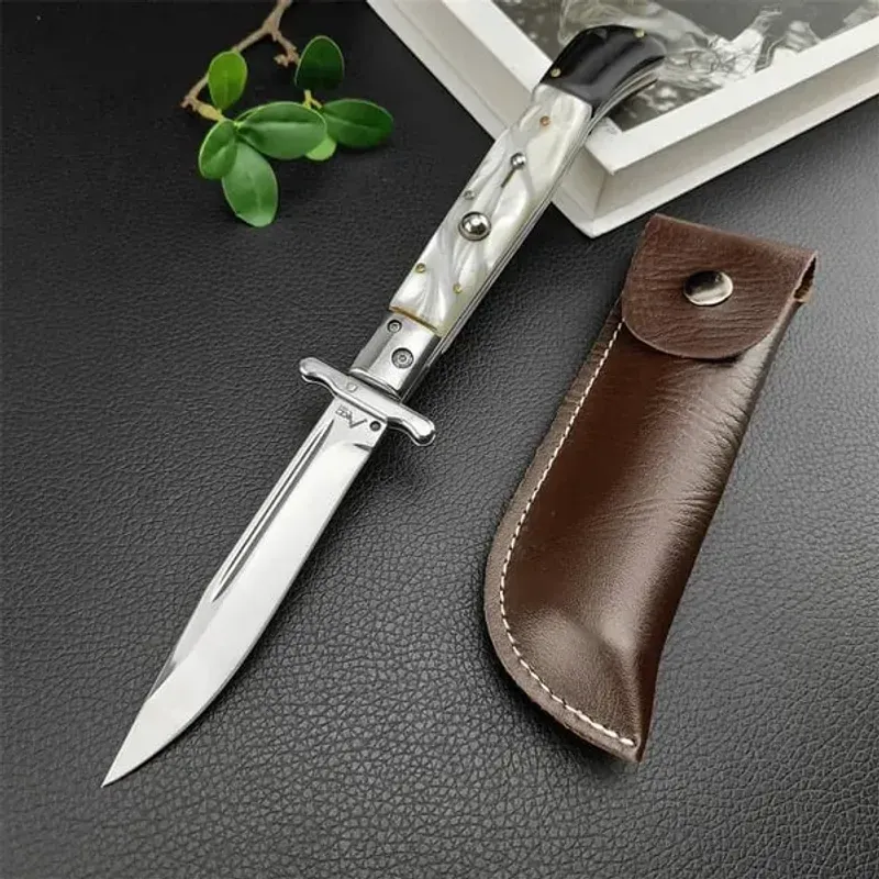 Beautiful Pure Handmade Old School Italian Stiletto Pocket Knife with stainless steel bolsters, a single edged bayonet style blade.